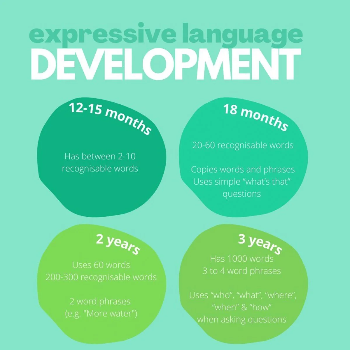 Here are a few milestones for expressive language development 🥰